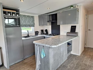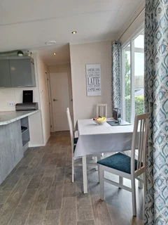 Unser Chalet befindet sich in einer ruhigen Wohnstraße des Parks. Der Weg zum Strand über den umlaufenden Deich befindet sich „um die Ecke“.